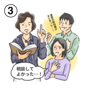 ご都合の良い「日時」「場所」でご相談いただけます。自宅でのオンライン相談などが難しい、平日の仕事の休憩時間に相談したい、などさまざまなニーズにお応えいたします。