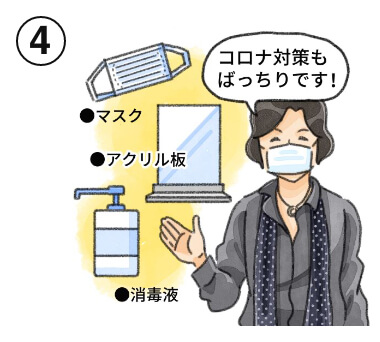 弁護士法人DREAMでは、皆さまに安心してお越しいただけるよう、マスク着用、触れやすい場所などの定期的な消毒の徹底、相談室のアクリルパーテーションの設置などを進めています。家事事件をあつかう法律事務所だからこそ、あなたやご家族に「もしものこと」がないよう配慮しながら、ご来所・ご相談をお待ちしております。