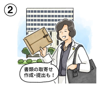 書類の取寄せ、作成、提出までおまかせ。日中、忙しいあなたに代わって対応します。