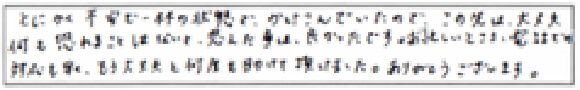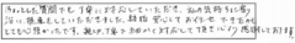 「ちょっとした質問でも丁寧に対応していただき、私の気持ちにより沿い、提案をしていただきました。終始安心してお任せできたのもとても心強かったです。親切、丁寧で細かく対応して頂き心より感謝しております。」