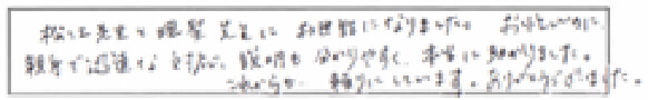 「松江先生と氏家先生にお世話になりました。お忙しいのに、親身で迅速な対応、説明も分かりやすく、本当に助かりました。これからも頼りにしています。ありがとうございました。」